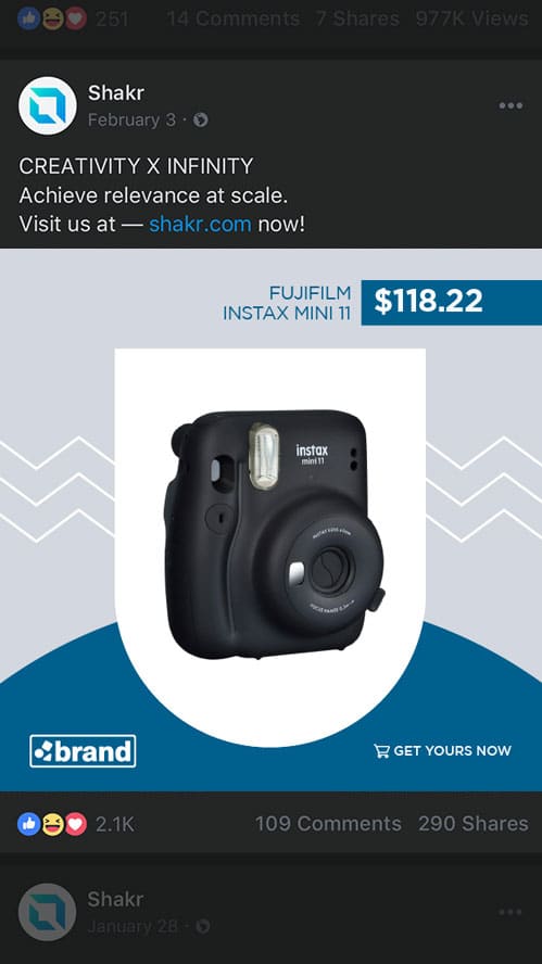 Successful catalog enrichment is not a one and done process. With Shakr as your creative partner, you always have high performing creative assets in your product catalog. We have you covered whether you need custom templates for special occasions like Black Friday or Summer Sale, or simply need new assets to fight ad fatigue.