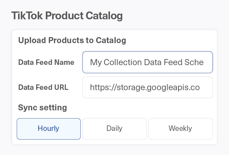 Simply add your enriched feed to your TikTok product catalog. Any updates to your original feed are automatically applied, so that you always advertise your products with the most up to date information.
